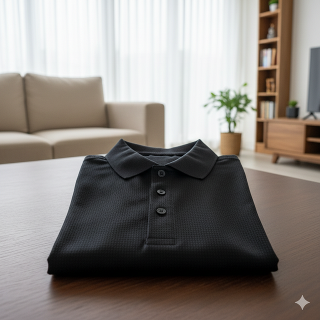 Black Micro Print Polo