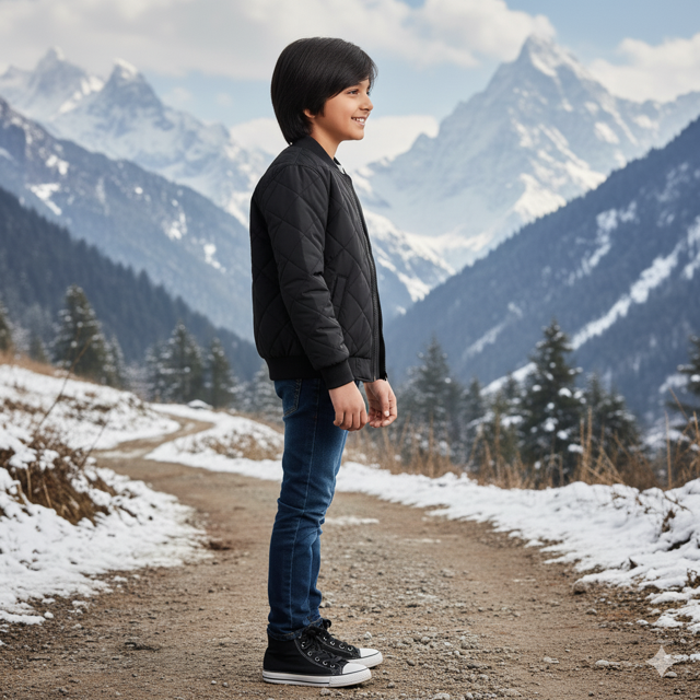 Polyester shell with padding, ribbed cuffs, full zip front, warm outerwear. Made in India.