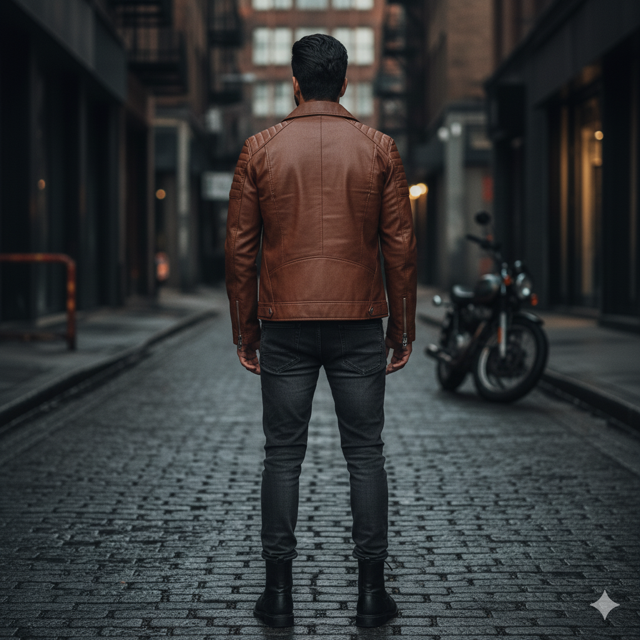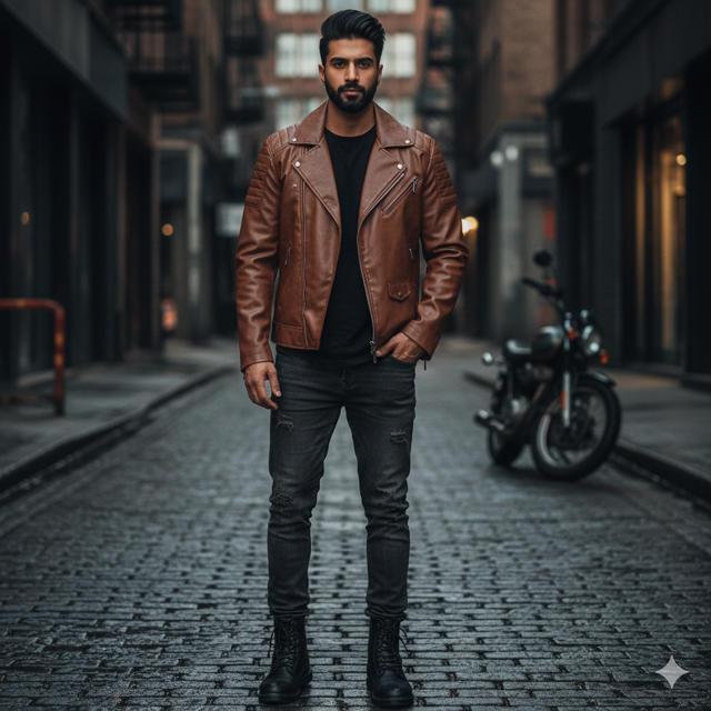 PU faux leather, zip front, biker style, edgy modern look. Made in India.