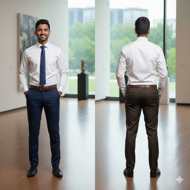 Poly-wool blend (280 GSM), classic brown formal color, professional. Made in India.