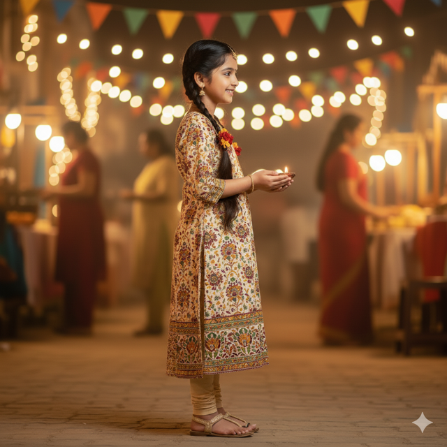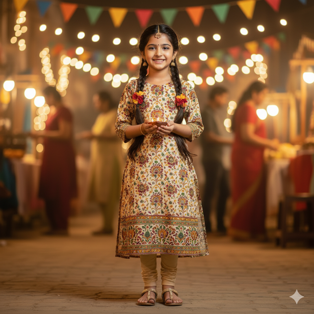 100% cotton (180 GSM) printed kurta with matching cotton leggings. Round collar, side slits, comfortable fit. Care: Machine wash warm. Made in India.