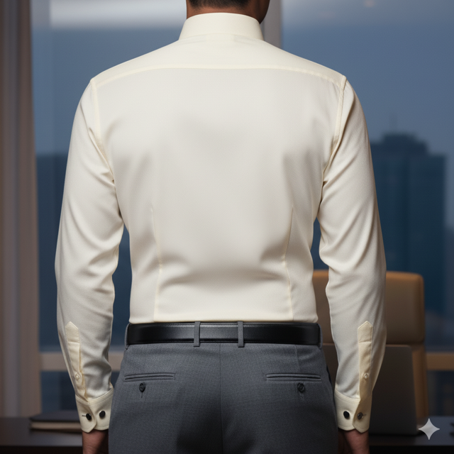 Premium cotton (220 GSM), double cuffs, sophisticated formal occasions. Made in India.