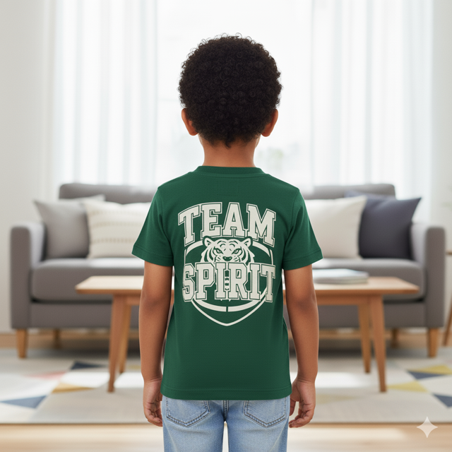 100% cotton jersey (180 GSM), screen-printed sports graphics, crew neck, regular fit. Made in India.