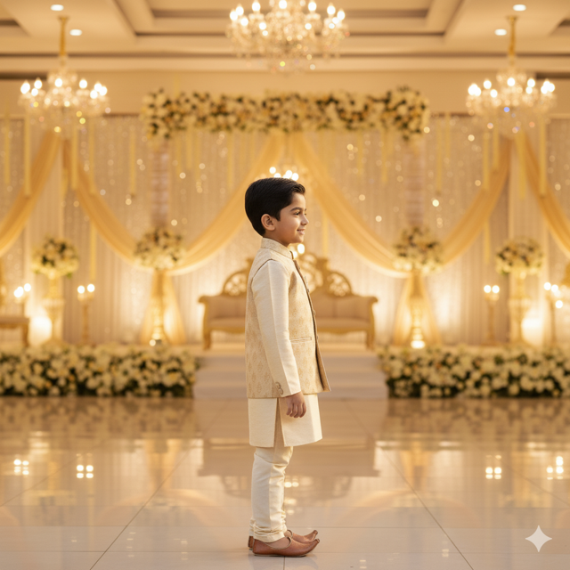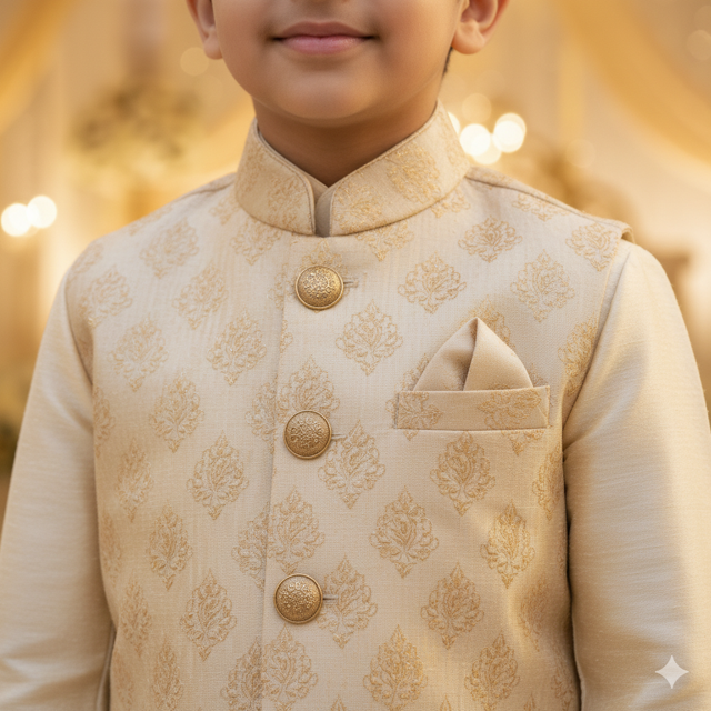 Silk-cotton kurta with poly-cotton Nehru jacket, festive special occasions wear. Made in India.