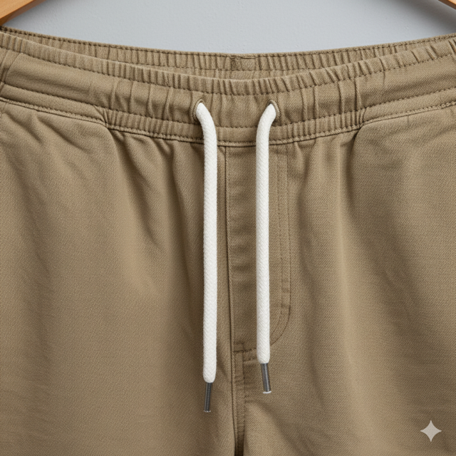 Cotton blend, elastic waist and ankle, drawstring hem, modern. Made in India.
