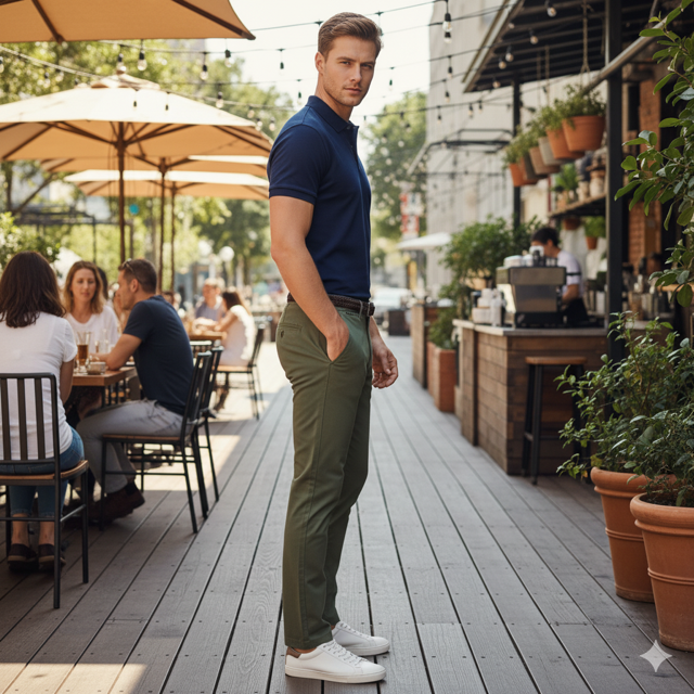 Cotton-elastane (230 GSM), flexible fit, contemporary casual style. Made in India.