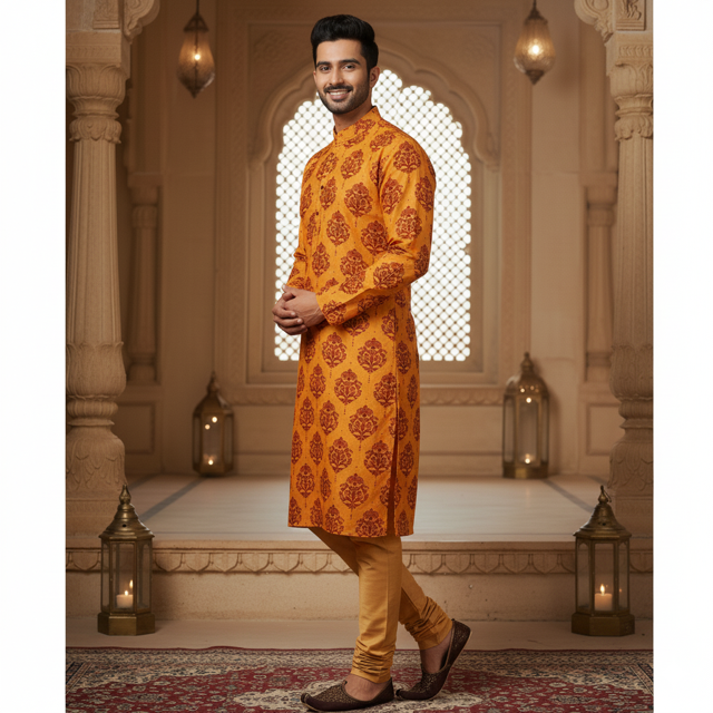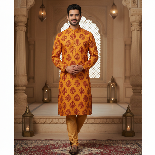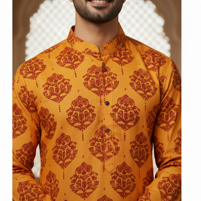Saffron Printed Kurta