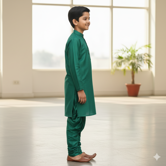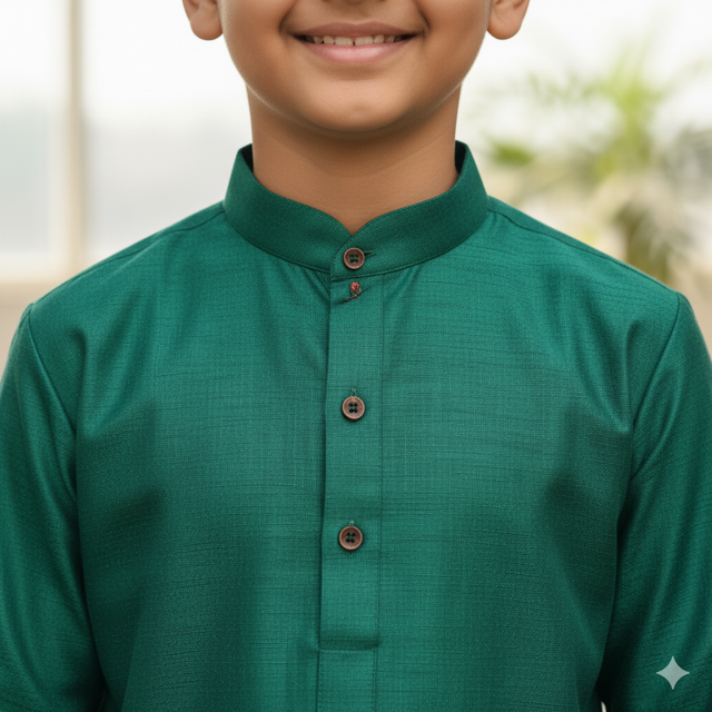 Silk-cotton blend (200 GSM), full sleeves, side pockets, traditional style ethnic wear. Made in India.
