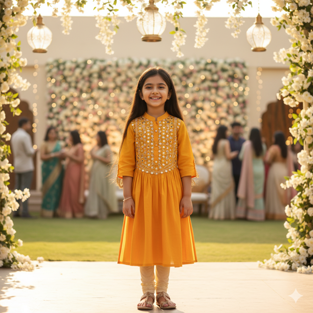 Cotton (190 GSM) with mirror work embroidery, mandarin collar kurta set. Traditional design. Made in India.